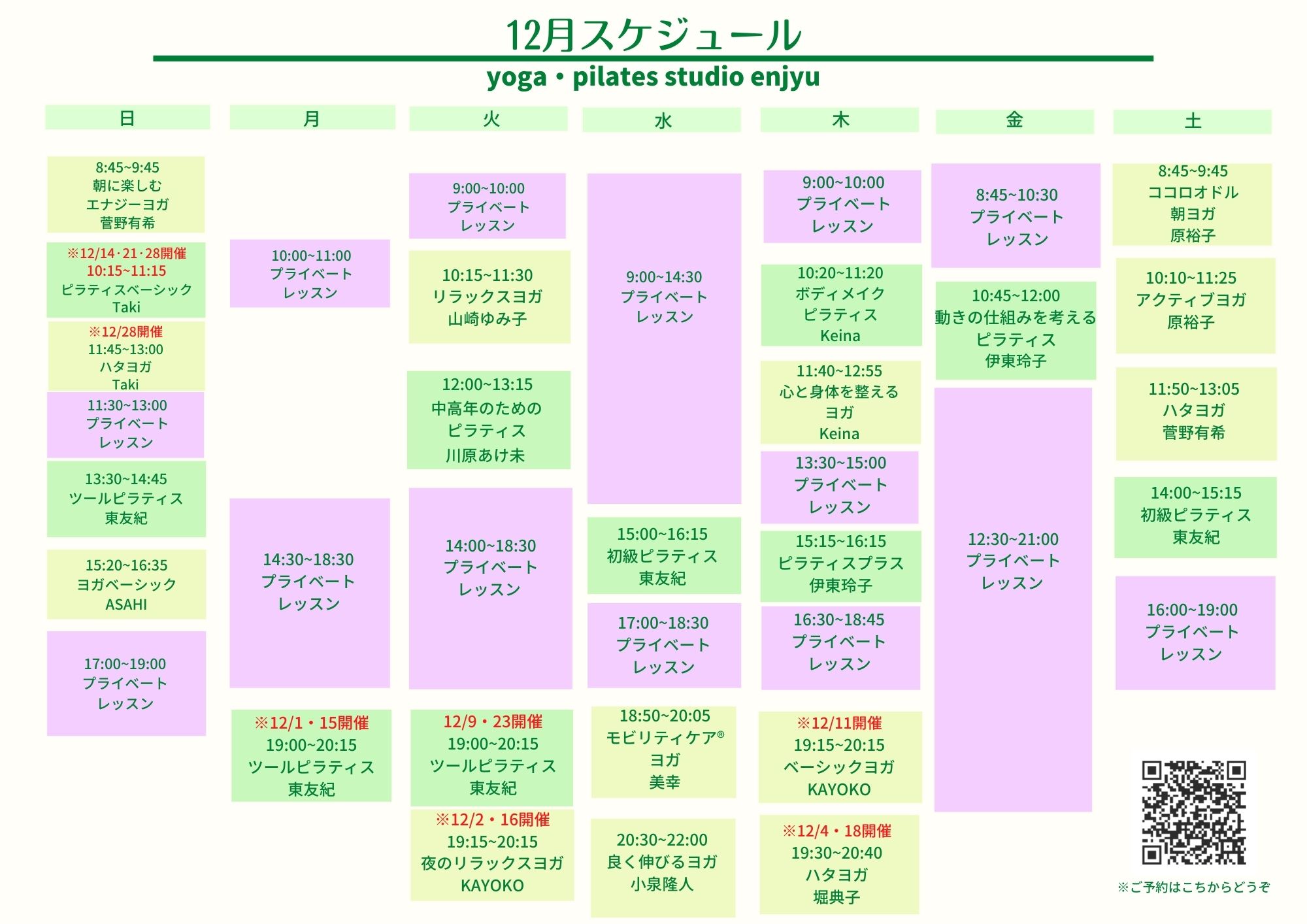 オープンクラスは好きなプログラムをご自身で予約して受講頂けます。